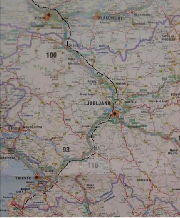 Alternativ = München – Salzburg – Villach – Tarvisio – Udine – Triest - Koper